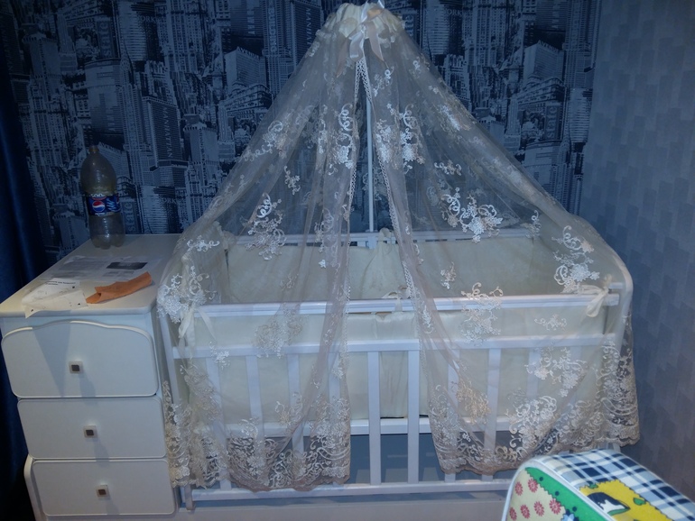 У нас стоит такая кроватка. Мне очень нравится.(фото сделано во время ремонта)