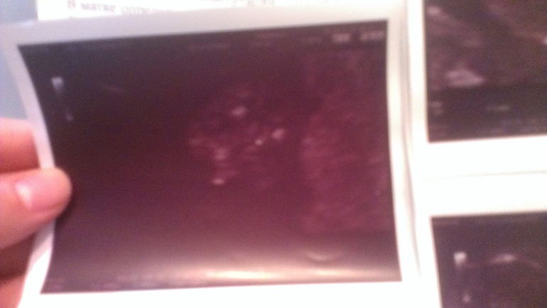 В пятницу мы прошли первый скрининг) в эту беременность как-то быстро бежит время, когда с Макушей ходила с нетерпением ждала каждую неделю, а тут смотрю на календарь - уже и первый триместр подходит к концу) Итак по УЗИ у нас все хорошо - 12,1 нед. поставили. КТР - 52,1 мм, БПР - 15,6 мм, ТВП - 1,3 мм, кость основания носа - 1,7 мм. И предположили мальчика) Хотя с Майюшей на этом же сроке и в этой же больнице тоже предположили мальчика, так что пока не окрашиваю кружочек) Хотя даже сфотографировали доказательство: