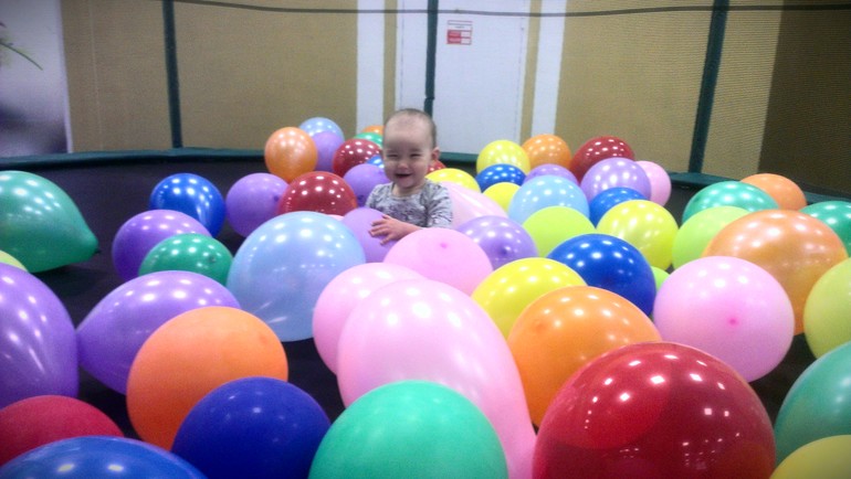А Макуша все растет, 27 октября исполнилось 10 мес., ходили в ТРЦ, доча поползала на батуте с шариками, покаталась на крутых машинах, а потом отрубилась на два часа)))