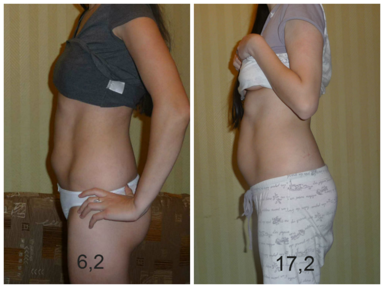 В первую Б в 10 нед посторонние люди видели,а сейчас то ли люди тактичные попадаются то ли не видно,особенно утром. Даже коллаж сделала.Посмотрите, есть у меня живот на 17 недель? с учетом того что сверху на животе жирка как надо и для сравнения добавила начало Б где виден этот мой жирок)))