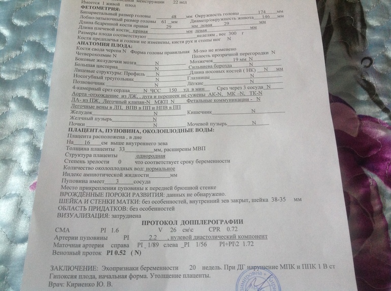 не соответствуем сроку на 2 недели по месячным. Поставили нам диагноз нарушение МПК иППК 1 В степень. Гипоксия плода, начальная форма. Утолщение плаценты