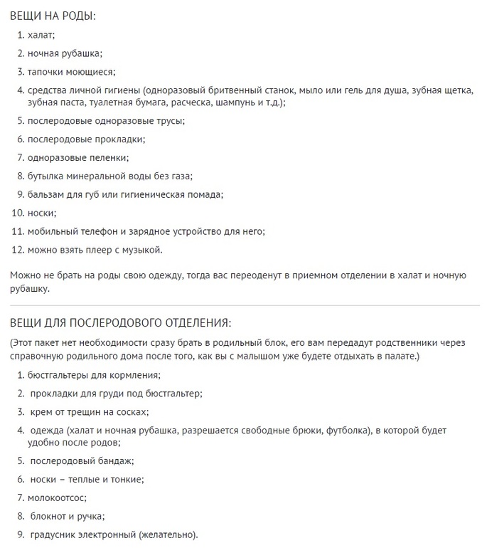 прикрепляю список указанный на сайте роддома в котором планирую рожать,