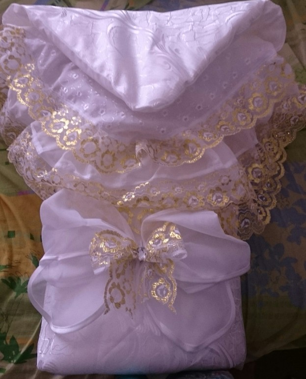 Я все же за теплый конверт с прорезями, чтобы не накрывать и можно было расстегнуть немного и красивую одежду, в которой папа получит малышку в руки. У нас это платье-боди, кардиганчик, колготки и трикотажная шапочка. И только после уже в конверт, в кресло и в машину. Уже упакованный ребенок, чтобы не тормошить лишний раз.