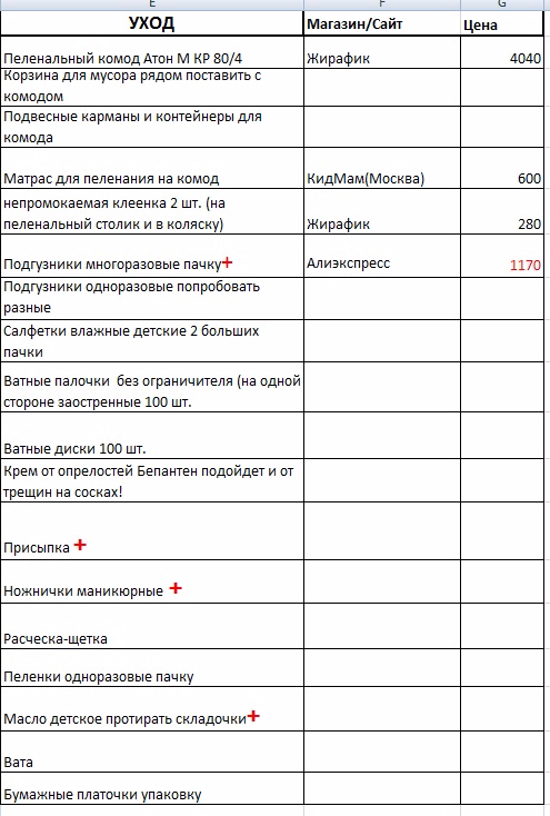 было интересно почитать, тоже начинаю свой списочек составлять (хоть и рано еще). взяла некоторое у вас, важное, что упустила.