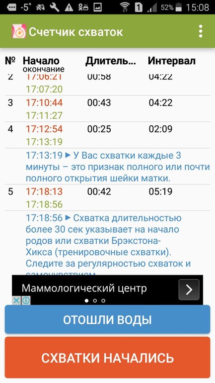 13:40 - подняли меня в диагностику, подключили ктг, периодически заходили врачи, спрашивали, как я, болит ли живот и т.д. Живот прихватывало с определенной периодичностью, я решила засекать с помощью схваткосчиталки, что б потом уже врачам просто показать.