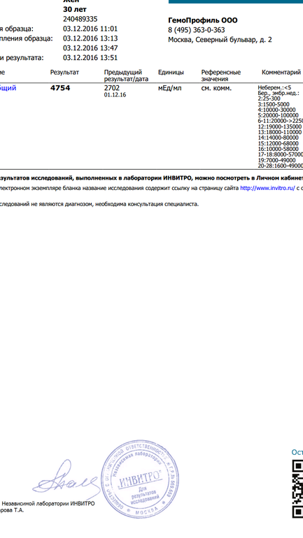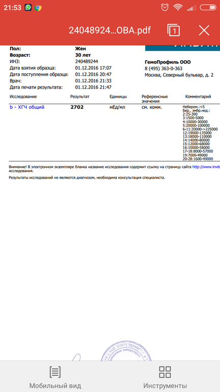 Сразу же сдала хгч, вот он сегодня же пришел.