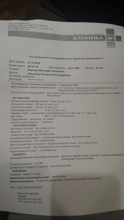 Сегодня 20 недель начались с похода на скрининг))) Нам там подтвердили сынульку, все с нами ттт хорошо, отклонений не выявлено по узи ставят 20+5 неделек) БПР -49мм , написали один живой плод в головном предлежании, плацента расположена по передней и задней стенкам левому ребру, лежим мы поперек маминого животика и я это прекрасно чувствую, буянит сын) головка справа,попка слева ))) Кол-во вод в норме шейка матки 39 мм)