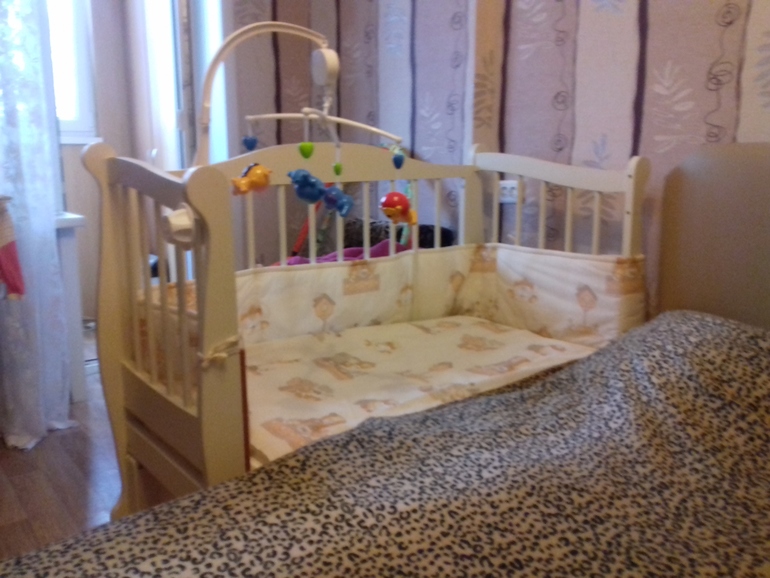 У меня все дети спали в своей кровати. Ни когда не спали со мной. Ни чего не придвигали, маятником пользовались до месяцев 5-6. По мне так лишь бы была прочная и крепкая. Так как в 7-8 месяцев мы прыгали уже. В 1.3 выбил стенку совсем... Ну и если разобрать потом собрать не болталось ни чего.