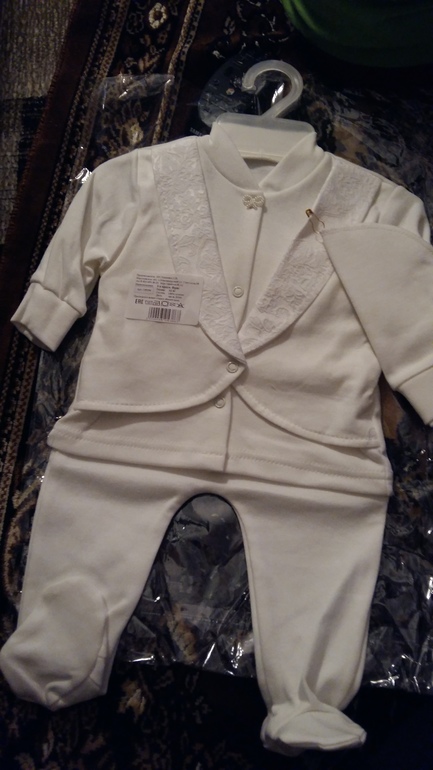 Наряд на выпискуВчера вспомнили про главный подарок, дочь куклу просила, а мы купили все кроме нее))) И вот вчера поскакали с папой))Купили крутую куклу и нашли первый комплект)) Красавчика забирать будем в костюме)))