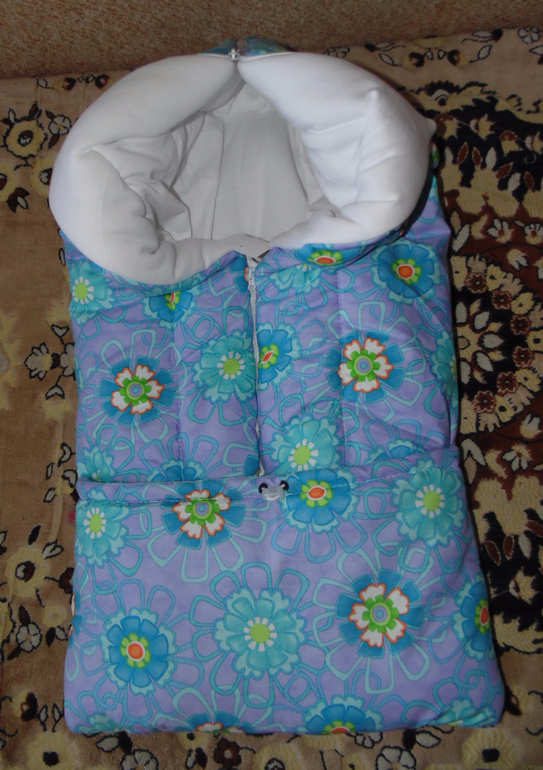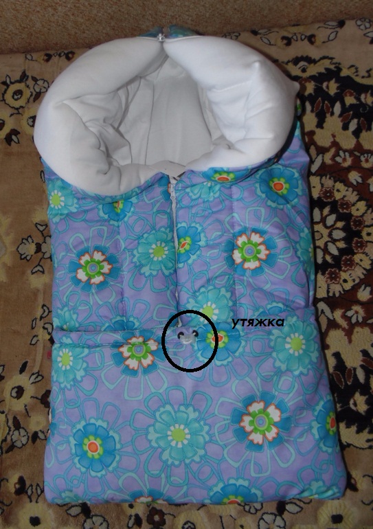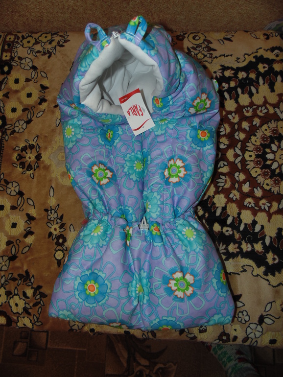 Ну так то крупненький малыш, он свободный да внутри..но там стягивается..есть утяжка..как раз под комплекцию ребенка, это плюс (как раз получается как эффект "Сосисочки" =)) на кукле вчера проверили)..не во всех подобных конвертах это есть, а под рост он сам по себе нормальный. Вот на фото видно ее , просто я ее не утягивала..при фотографировании