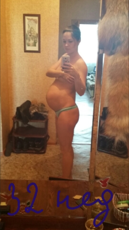 у нас тоже 32 недельки) и попа растет больше чем живот, точнее ляжки)