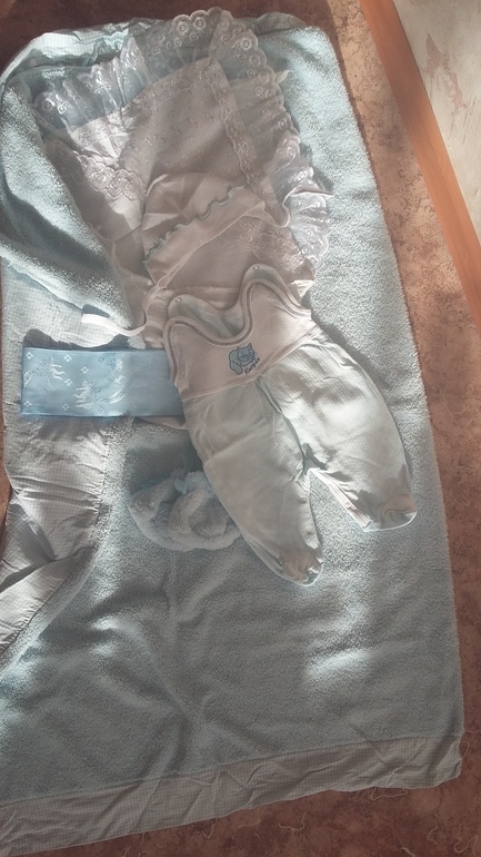 Наряд на выпискуПеребираю б/ушные вещи, и нашла в пакетике лежал отдельно Андрюхин набор с выписки. Рыдаю, не могу...Какой он был кроха, и сейчас такой большой стал. Как они быстро растут...