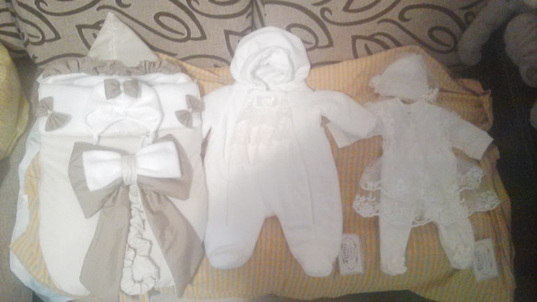 Наряд на выпискуУрааа!!! Два месяца бесконечных поездок по магазинам,бесчисленных часов в интернете в поисках комлекта для выписки наконец-то увенчались успехом))) Я нашла то, что хотела для своей принцессы!))) Так что доченька к выписке готова, а вот мамочка пока нет- не найду себе наряд подходящий)