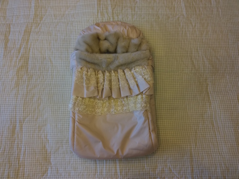 А в этом будем гулять, конверт на овчине и комбинезончик)