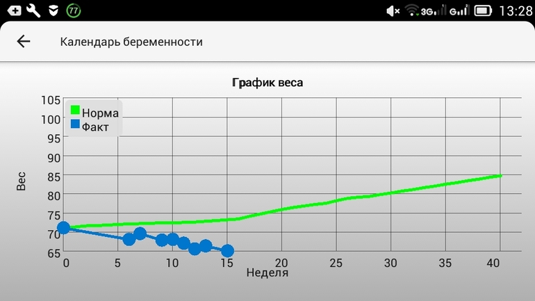 И вот, буквально с 5 недельки вес стал падать... Иногда бывало на весах -1 кг, а через день этот килограмм на месте. Неделю назад вес зафиксировался на 66 кг...