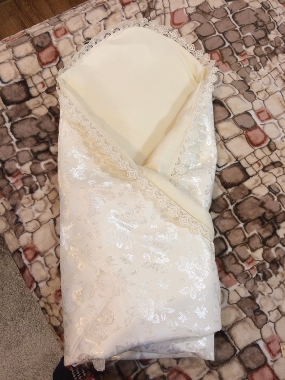 Наряд на выпискуДолго думала в чем выписываться это будет месяц май. Ходила смотрелась конвертики, одеялко и все не то! А тут чисто случайно увидела ткань и влюбилась! Решила попробовать сшить! Вот результат!