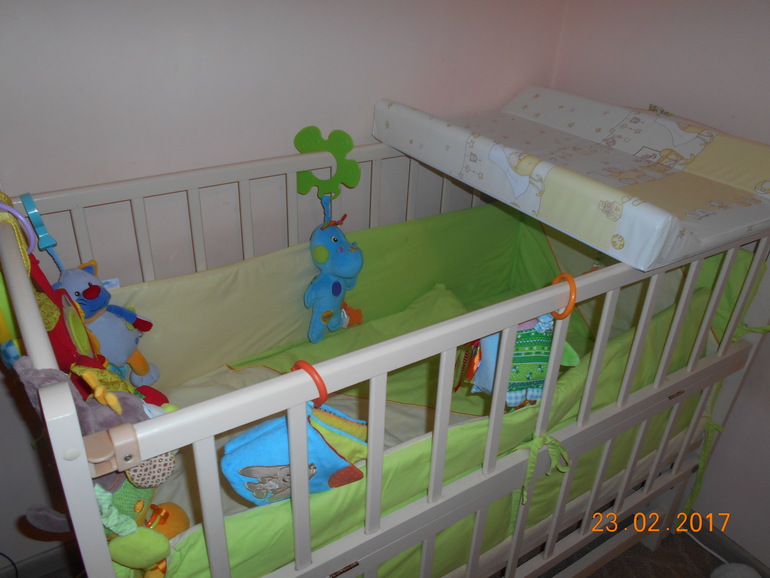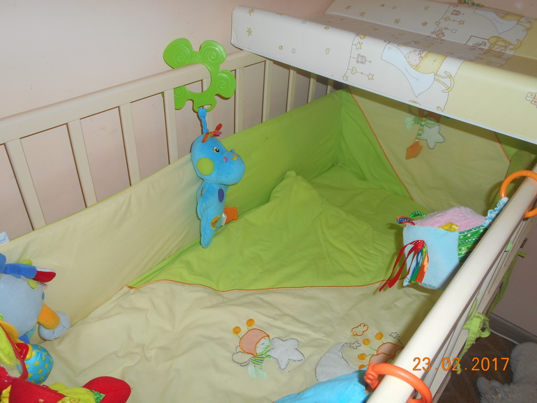 Наша кроватка с постелькой и пеленатор!От Евуси так и стоит новая она в ней так и не спала и не спит вообще не успела продать ,наверное как чувствовала))Осталось еще балдахин повесить)