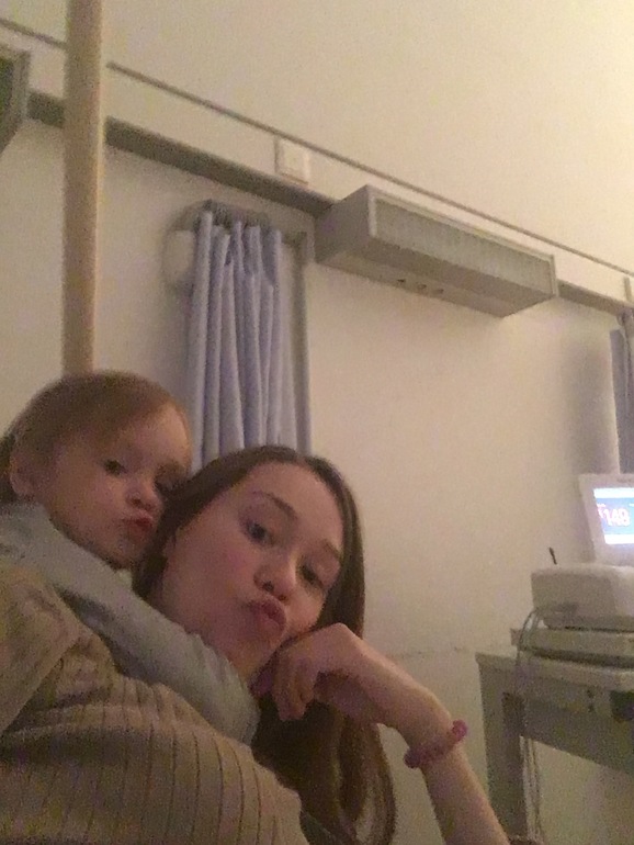 Около 17.30 были в роддоме, объяснила ситуацию, взяли мочу у меня (крови больше не было) и положили на ктг. Никто ни слова не сказал, что я приехала с ребёнком! Она все время тусовалась со мной, ей все было ей очень интересно, поэтому лежать было проблематично, но мы справились. Делали селфи 😄