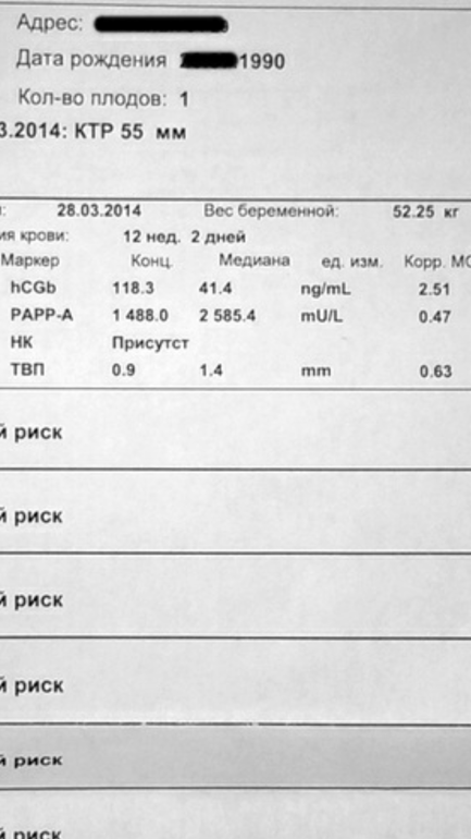 P.S У меня был скрининг через 3 дня после выписки из инфекционной больницы - вот это прям очень хорошая причина для плохих анализов скрининга. Со второй лежала на сохранении,а через пару дней после выписки скрининг. И результаты не айс. Говорила с генетиком- пугал конечно.... А моя гинеколог прямо сказала,что мало того,что скрининг- это вообще только вероятность,а не готовый результат,так еще и повлиять на него может все,что угодно. Кстати, с третьей беременностью,когда проходила первый скрининг - на узи прямо написала врач,что скорей всего риски- это особенность моего организма. 2 детей - плохие первые скрининги- дети здоровы. К генетику,конечно,сходите. Но лишний раз не переживайте. Все у вас будет хорошо