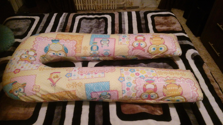 У меня формы U, наполнитель холлофайбер, очень довольна, сплю только с ней с 17 недели. Муж и кот тоже на ней любят поспать, стоит мне отлучится)