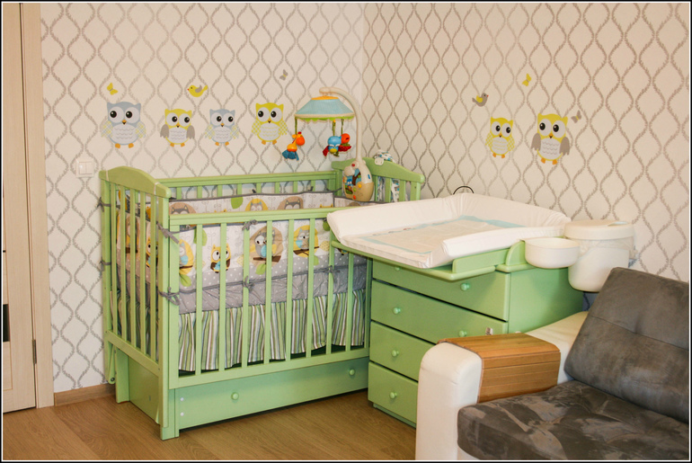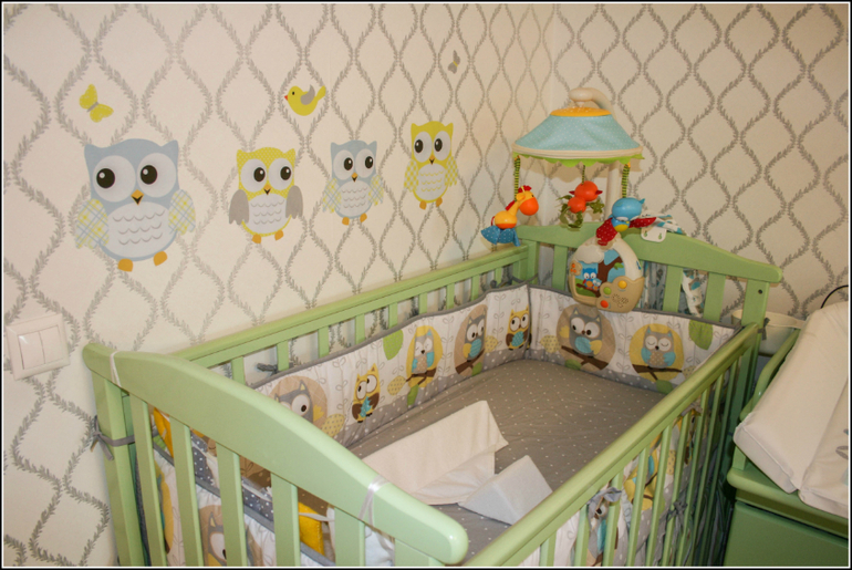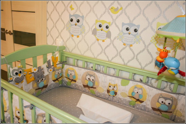 С переездом в двушку мое отношение к местоположению новорожденного не изменилось: я по прежнему сторонник расположения его в одной комнате с родителями, пока не свернется ГВ и он не начнет спать всю ночь самостоятельно, т.е. до 1-1,5 лет. Детская пока в полном распоряжении Даника, а совиный уголок для Эм был запланирован еще задолго до ее появления. С совами, которыми я брежу уже ни один год, я решила оторваться по полной! Кто знает, будет ли у меня еще шанс. Догадываюсь, что с дизайнерской точки зрения их явный перебор (еще куча игрушек и одежды с ними