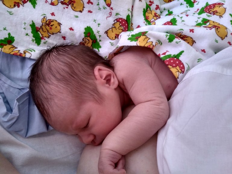 Проснулась, а рядом кряхтит мое счастье. Леон. 3570 кг, 53 см. Надо мной "висят" капельницы и доктор, что принимала меня ночью с "деревянной шейкой". "Ты герой этой ночи, - говорит она, - единственная, кто рожал самостоятельно, да еще и так! Все заживет скоро, будешь как новенькая, кушай только хорошо и восстанавливался." И скомандовала срочно привезти мне завтрак. И покормить прямо там.