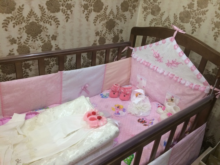 Вроде не сильно опустился. На фото высокий еще, может просто такой ракурс. Кроватка красивая очень, нежная такая, молодец. Легких родов вам с малышкой😊 И "послеродов" тоже легких