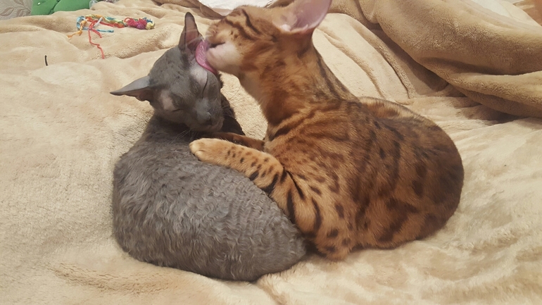 И еще, а если ревновать будут? Когда младший котик появился, старший шипел на него сильно, и до сих пор иногда игры перерастают в драки с дикими воплями. Ревнуют друг к другу. Один приходит, второй его согнать хочет. А потом, как ни в чем не бывало, лижут друг друга и обнимаются.