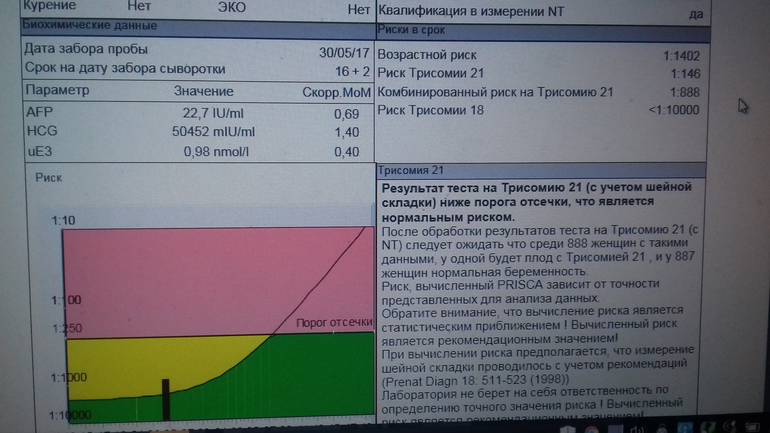 Что?? Твп с 1 скрининга, и расчеты на 2, кровь берут свежую, а УЗИ показатели месячной давности?! Что за идиотская программа, астрайя хоть все измерения свежие делает, приска вообще загон. Какой был твп тогда?