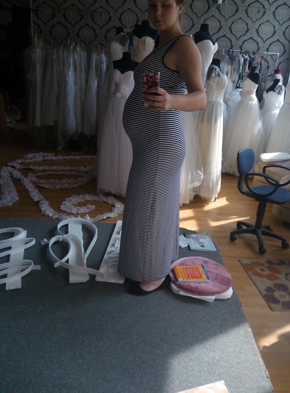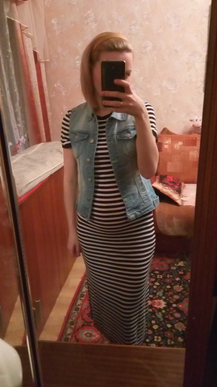 По-моему все отлично! Только вчера видела беременную в похожем на Ваше платье)) да и сама раздумываю о покупке такого, у меня все летние платья короткие "разлетайки" чуть выше колена, а хочется и ноги прикрыть немного, и в бесформенное нечто не превратиться. На джинсы для беременных уже даже смотрю с ненавистью))) Напомните, пожалуйста, где Вы платье брали?