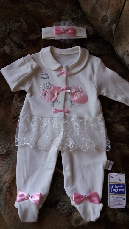 У нас тоже в июле выписка и на слусай жары приготовила бодик, носочки + легкий пледик. А подобный по плотности ткани комплект у меня на более прохладную погоду приготовлен + к нему шапочка и пледик.