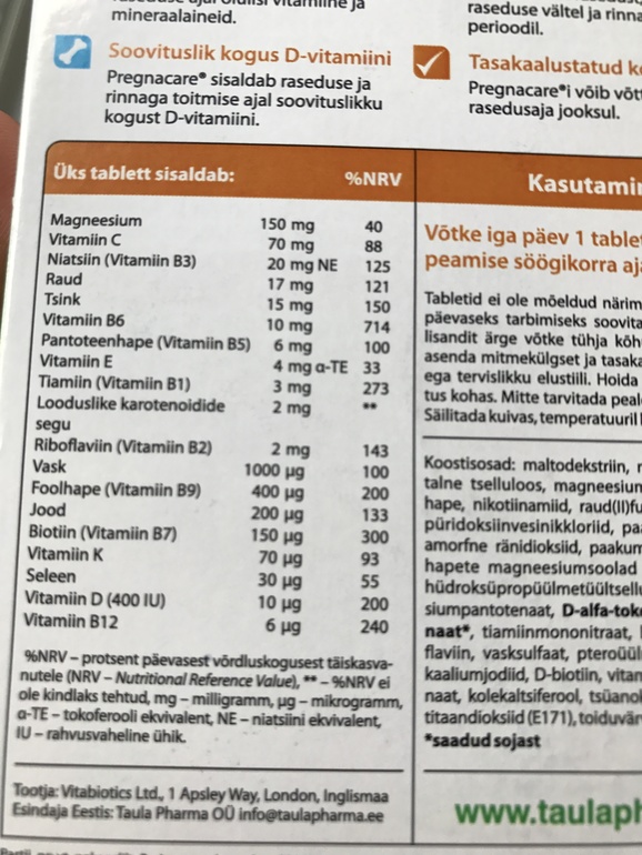А я когда звонила в жк записываться на первый приём мне сразу сказали начать пить витамины и именно для беременных, мол в них нет витамина А, который нельзя при беременности. Не узнавала почему :) фолиевая есть в моих. Вот такие купила, чисто по наитию...18 евро за 30 таблеток. Блин дорого будет их всю беременность принимать 😂 Так что спрошу потом на консультации нужно ли, может тоже только фолиевую можно