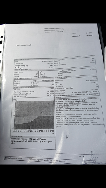 И потом, вы просто подходите на рецепшн, и говорите что хотите скрининг: узи и двойной тест и всё.. вам выпишут чек для узиста и в лабораторию, и там все будет написано: для лаборантов понятно на что проверяем, для узистки понятно что смотреть... по другому частные клиники и не работают.... официально чек через рецепшн и всё. На рецепшн обычно всегда говорят по русски... а на узи когда будете на всякиц случай проконтролируйте чтобы посмотрели носик и толщину воротничкового пространсва...