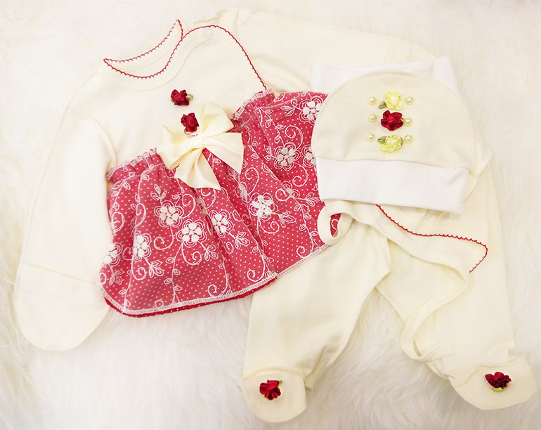 Одевайте с юбкой)))это же девочка))))родственники же будут?будут)ну папа как минимум)вот и будете красивыми)вязаный не надо сверху,спаритесь в машине....слип с юбкой сверху тёплый комбез...я так планирую)