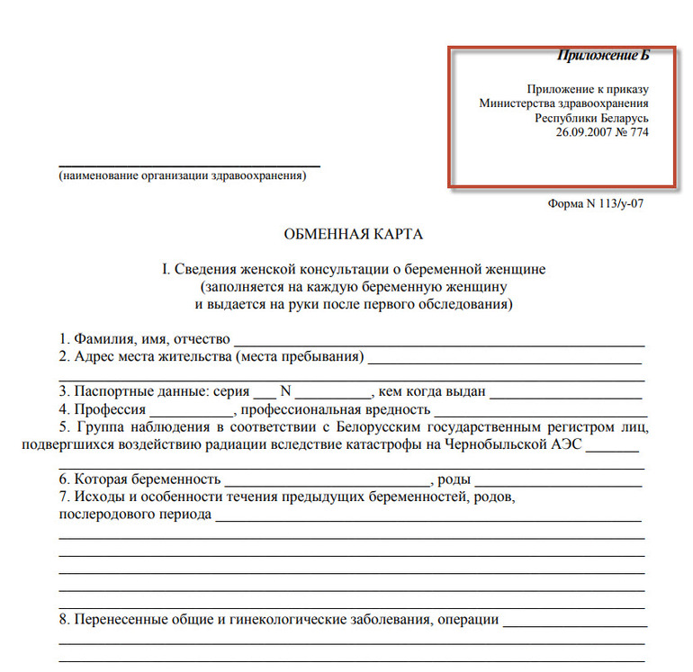 Приложение к приказу Министерства здравоохранения Республики Беларусь 26.09.2007 № 774