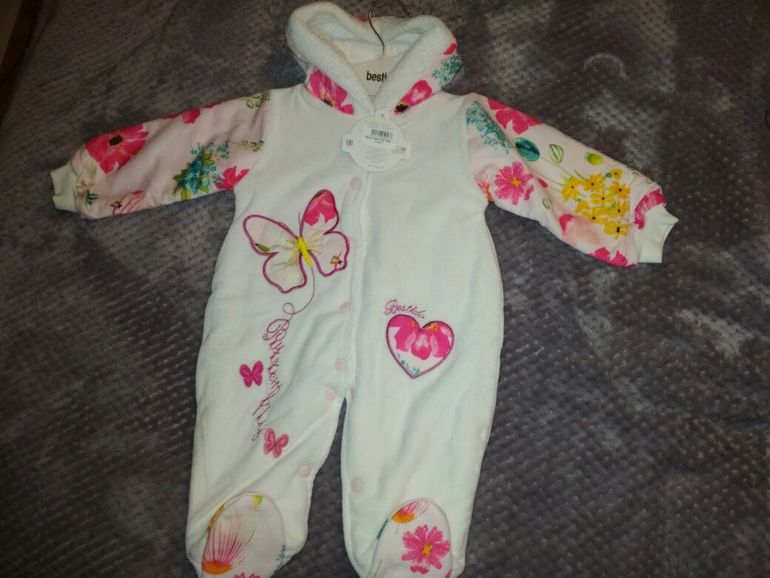 Одеваем этот комбезик (и еще один на сменку) под зимний. Очень мягкий,приятный на ощупь. Считаю на молнии самые удобные вещи) В поликлинику только в нем ходим. Кнопки при орущем ребенке-это зло)))(моя одеваться не любит)