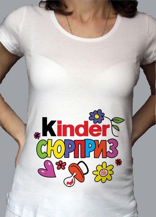 У нас с такими надписями футболки в магазинах одежды для беременных есть, причем из там очень много разных.