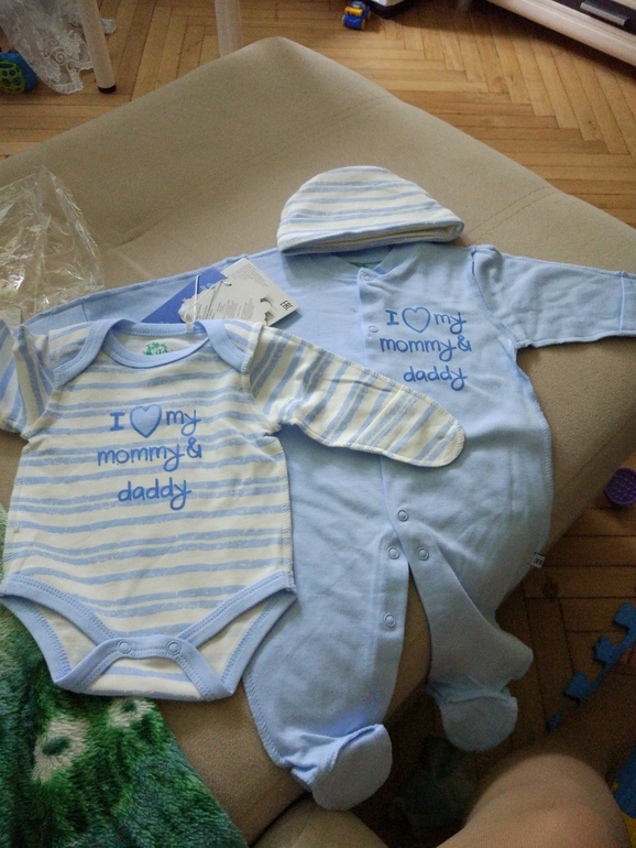 Ну и вниз тоненький слип и чепчик. Думаю не замерзнем)) идти от роддома до машины не далеко. Как показывает мой опыт с дочкой ( выписывались 24 февраля) половина не пригодилась... Даже в роддоме не одели(.