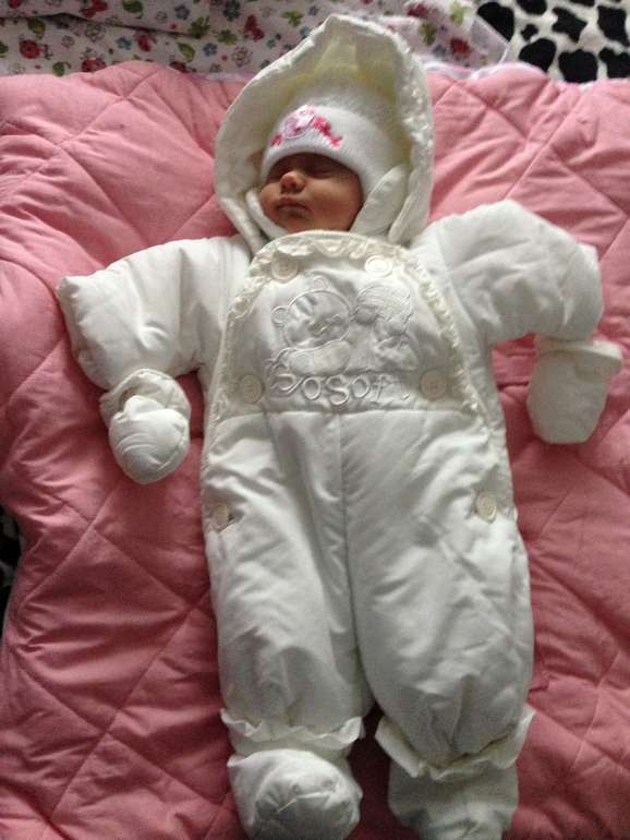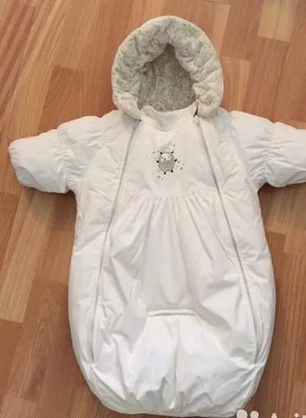 Мы выписывались 07.03 в таком. Шили на заказ, 2 слоя утеплителя (сказали до -18). Под низ бодик и слип нарядный, шапочка, носочки, теплая шапка. Но мы на улице не стояли, сразу в машину. И ехать близко. Прорезей под автокресло в нем нет, но мы в люльке от коляски были.