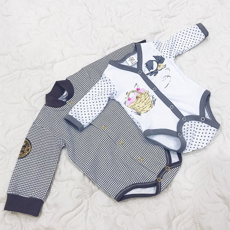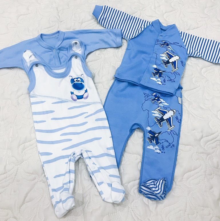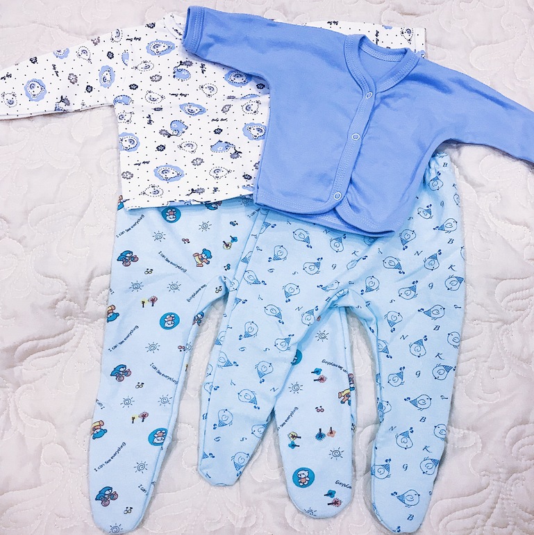 Так же купила конверт на выписку голубой. Ничего особенного, одеялко шло вместе с ползунками, кофточкой и шапочкой.
