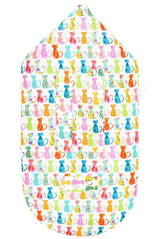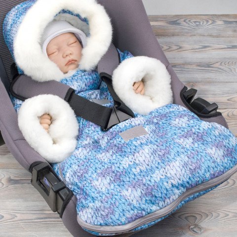 В таком, с прорезями в конверте, все равно реб нормально не будет зафиксирован как в одеяльце. Конверт больше для передвижения в коляске - для утепления комбинезона. Тогда уж лучше комбез-мешок с прорезью между ножек в автокресло