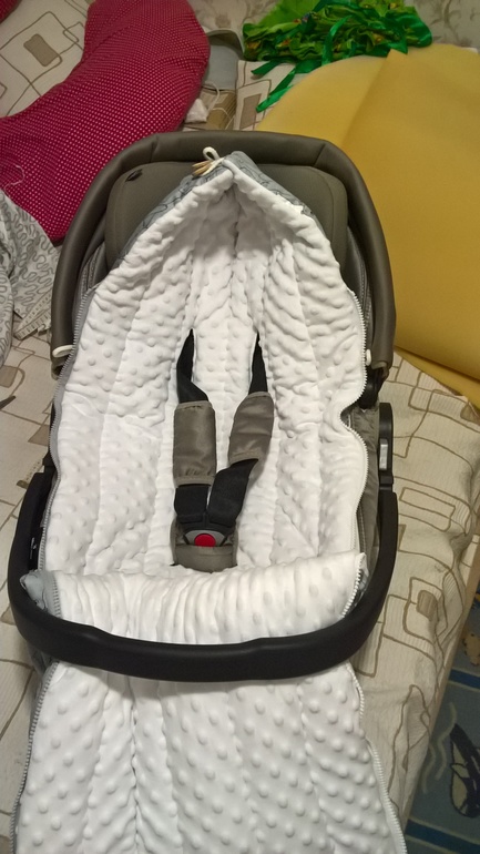 Спасибо)) я поняла, как примерно делать. Нужно только купить кресло и под него уже делать. Спасибо огромное за подробные фотографии! Очень помогло визуально всё представить. Обрабатывать тоже думала мелким зигзагом или как под пуговицу. С родственниками вроде бы сошлись на том, что действительно нужно автокресло. Будем теперь думать, какое лучше. Покорное новое или бу. Может коляску 3 в 1 купим.