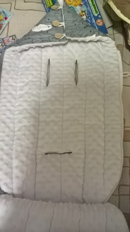 Подскажите, у Вас в конвертике 3 прорези, получается? Как правильно найти место для них? У нас нет ни автокресла, ни машины. Вообще слабо представляю, как всё устроено там. Просто не понимаю, почему тогда для детей нет кресел таких специальных в других видах транспорта, например, в автобусах? Они в равной дорожной ситуации находятся с легковыми автомобилями. Но почему-то ребёнок просто в коляске лежит и всё. Автобусы у нас ездят за МКАД по шоссе с приличной скоростью иногда...