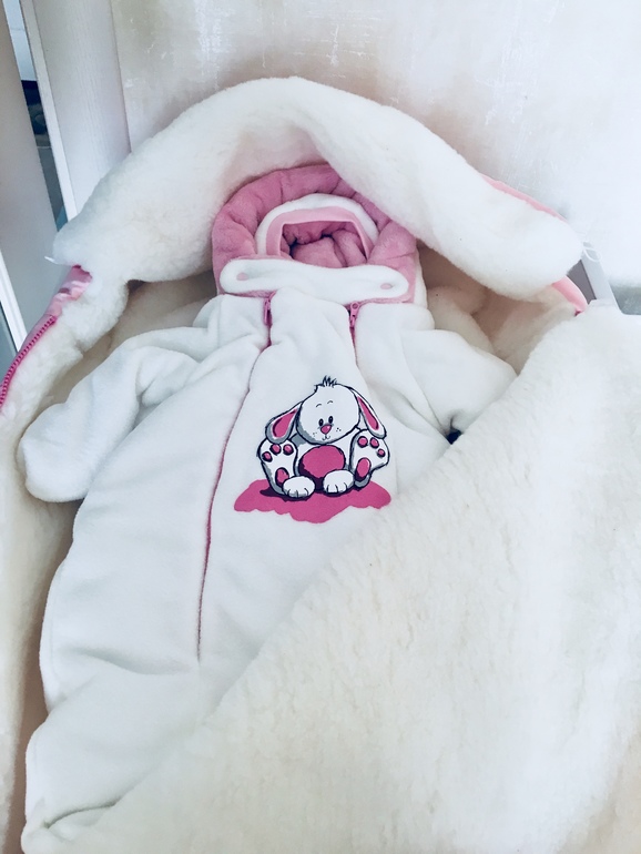 Бодики целиковый + комбез зайка и сверху или на овчине или в конверт первый