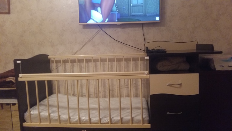 С первым было как у автора ниже. Очень удобно. Стол убрали со временем (Стол книжка для застолий:)) а комод по сей день служит второму уже.