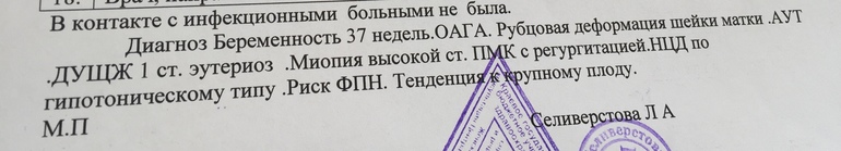 Есть в анамнезе что-то про необходимость дородовой госпитализации на ваш взгляд?