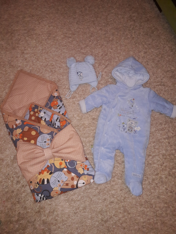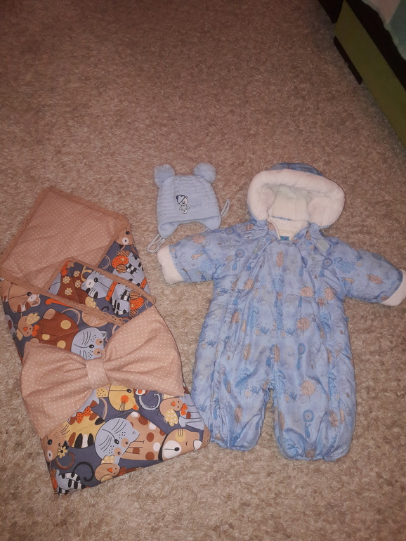 Голосую за слип с жирафиком. А комбез мне кажется в любом случае деми одевать, вы же гулять не будете. А вот с зимним комбезом вроде уже конверт лишним выходит.