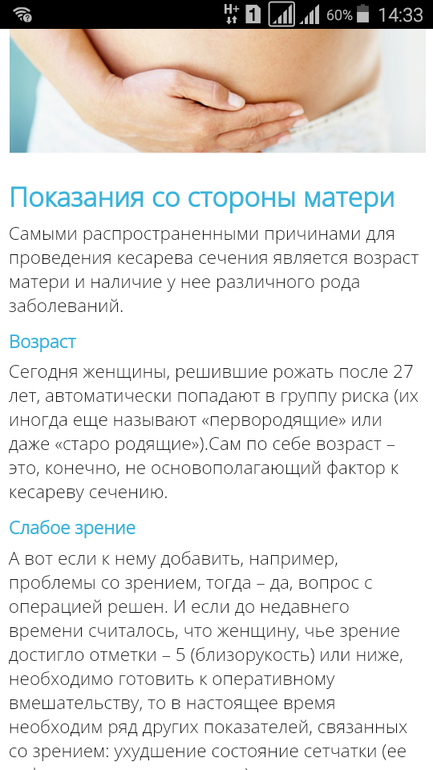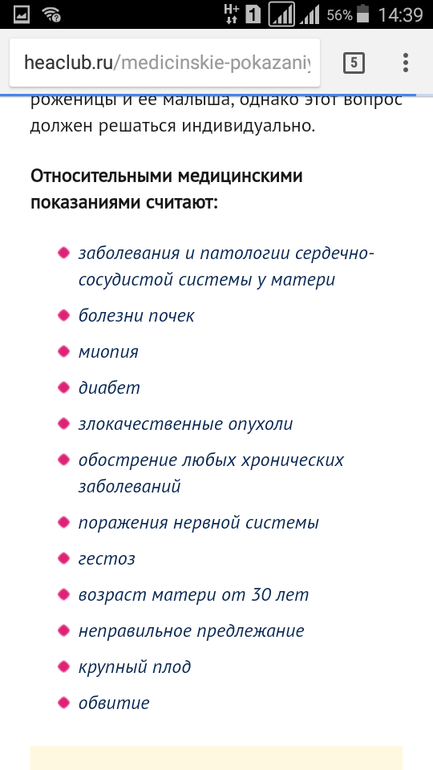 Я когда с Наташей была в роддоме,со мной в палате была женщина-ей было 31 и первые роды и она говорила,что после 30 -это показания для КС по желанию женщины и она так делала. Так и сказала-мне уже за 30,хочу кесарево,врач сказала-без проблем(она была в роддоме на дне открытых дверей и на словах с врачом договорилась)Когда начались схватки она приехала в роддом-врач начала спрашивать-может сама попробуешь родить?Она -нет,делайте КС и ей сделали,хотя показаний,кроме как возраст не было.