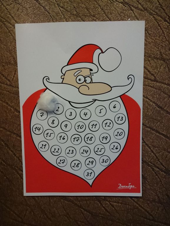 Пошел отсчет дней до праздника, дома поселился вот такой веселый Дед Мороз с растущей изо дня в день бородой: