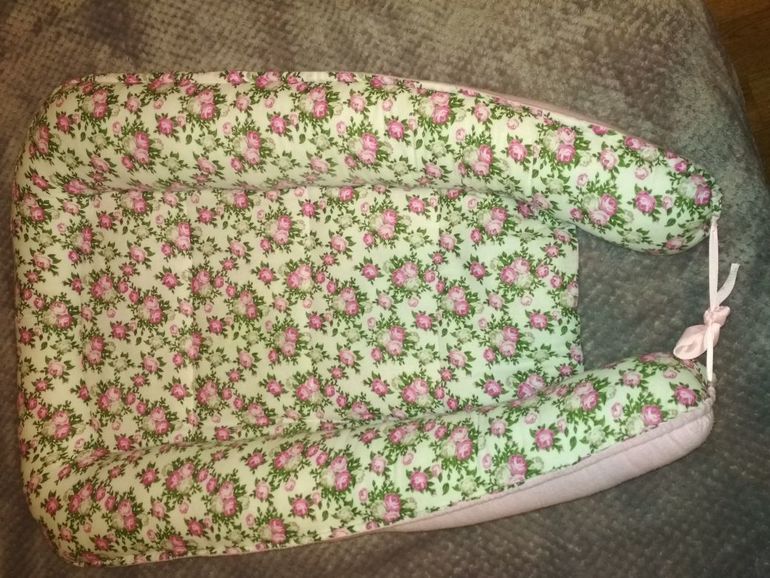 Вернувшись домой малышка криком кричала,когда мы укладывали в кроватку. После маленькой "люльки" в роддоме ,мы положили в огромное пространство кроватки. Пришлось соорудить, из подушки для беременных, уютное гнездышко.